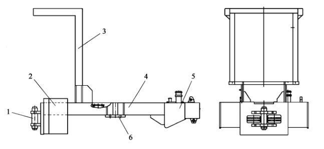 1-中心銷軸;2-液壓油箱;3-傾翻保護架;4-框架大梁;5-燃油箱;6-后橋支板