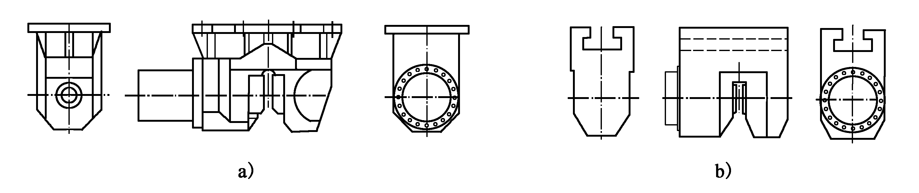 液壓夾頭與樁錘的連接根據(jù)樁的形狀和尺寸不同有多種連接形式,圖2-22是液壓夾頭與樁錘常用的幾種連接形式。
