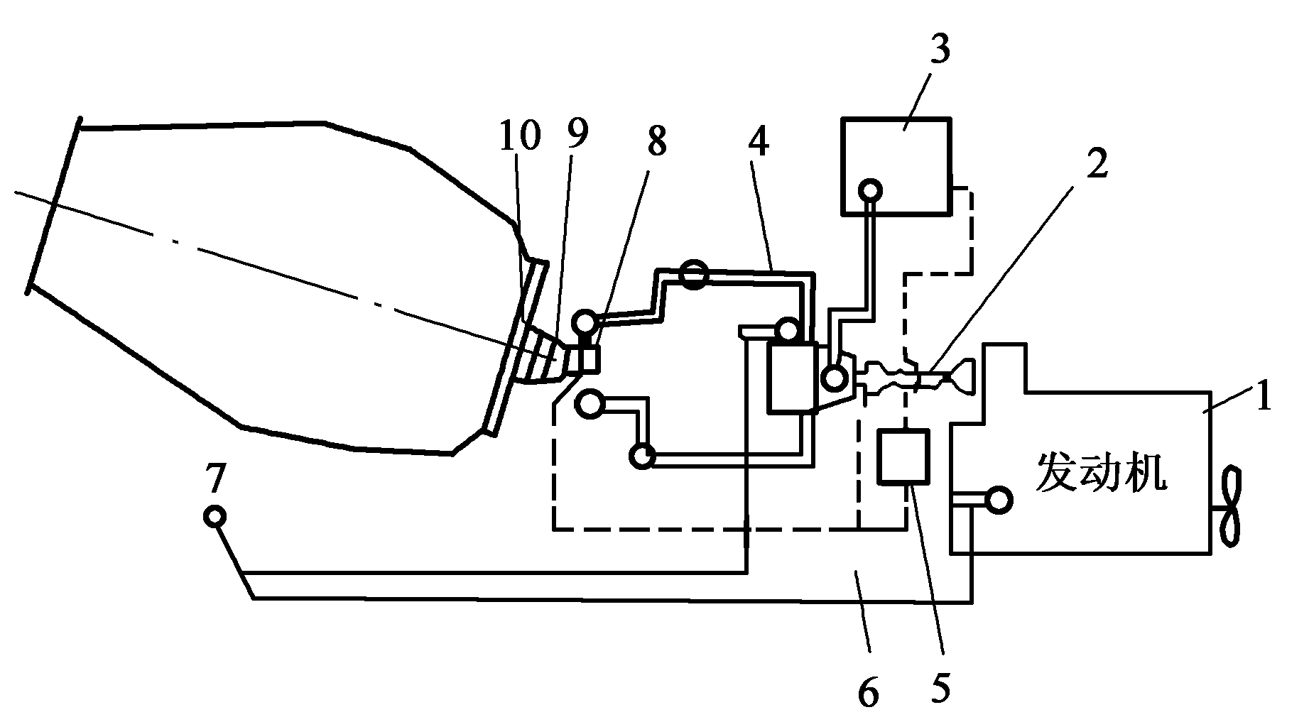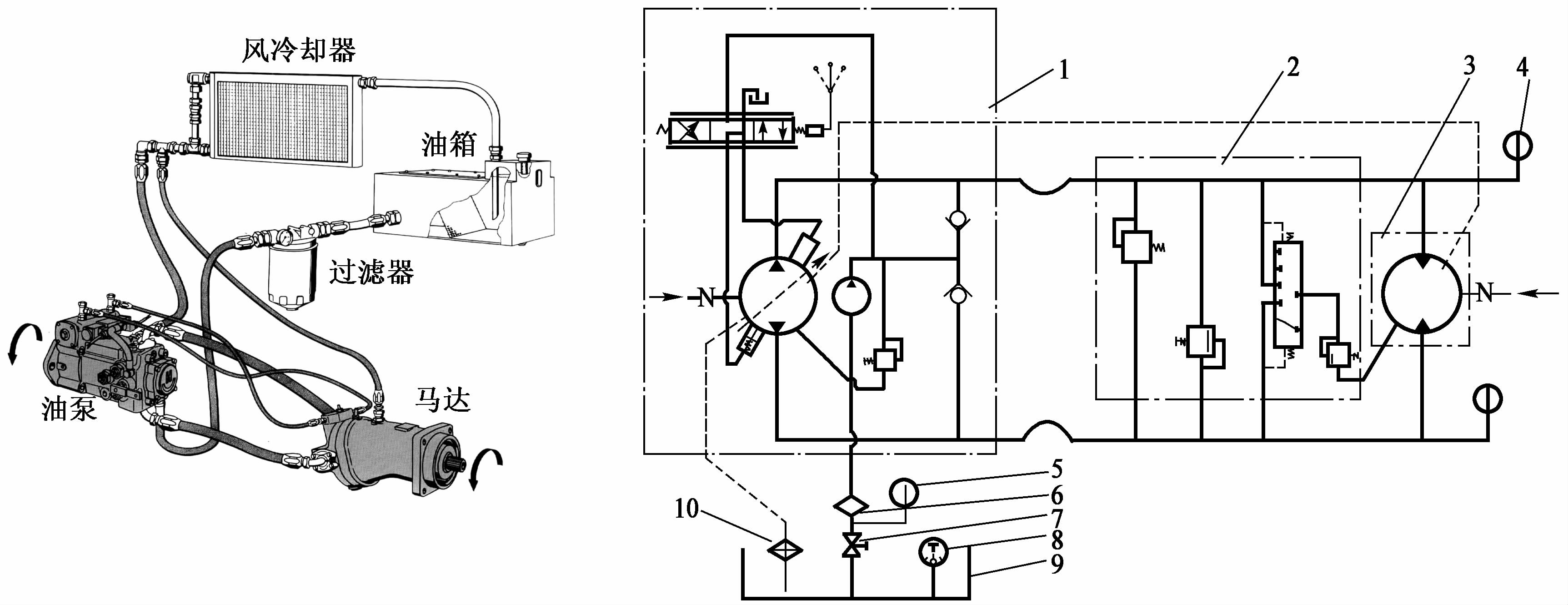 1發動機;2傳動軸;3油箱;4配管;5油液冷卻器;