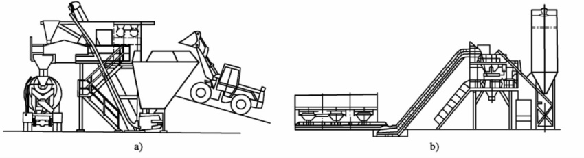 按生產工藝流程可分為單階式和雙階式。單階式是指在生產工藝流程中集料經一次提升而完成全部生產過程;雙階式是指在生產工藝流程中集料經兩次或兩次以上提升而完成全部生產過程。