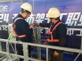 本次活動(dòng)主要比拼實(shí)際上機(jī)的操作。實(shí)操考核,通過(guò)比拼高處作業(yè)吊籃安裝拆卸、規(guī)范操作以及安全隱患排查,考核選手們高空作業(yè)的精準(zhǔn)度、安全規(guī)范以及應(yīng)急處置的能力與水平。在實(shí)操現(xiàn)場(chǎng),選手們精神飽滿(mǎn)、沉著應(yīng)賽、操作嫻熟、動(dòng)作流暢,展示了他們?cè)诟咛幾鳂I(yè)吊籃安裝拆卸及操作方面的熟練技巧與過(guò)硬能力。各位選手將理論知識(shí)加以綜合高效地應(yīng)用,高質(zhì)量地完成每一項(xiàng)操作步驟,整個(gè)實(shí)操過(guò)程一氣呵成,展現(xiàn)了對(duì)吊籃安全操作規(guī)程的嚴(yán)格執(zhí)行和應(yīng)急處置的迅速反應(yīng)能力,也展現(xiàn)了優(yōu)秀的團(tuán)隊(duì)合作精神和高效的工作風(fēng)貌。評(píng)委們細(xì)心觀察評(píng)定選手們每一個(gè)操作細(xì)節(jié),精確打分,精準(zhǔn)裁定,保證了比賽的公平公正。